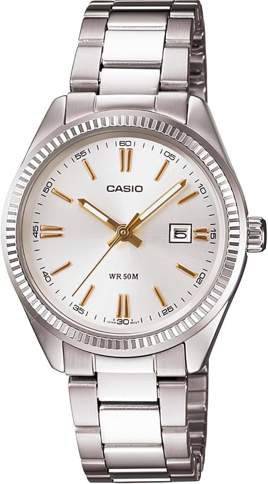 Женские наручные часы Casio Collection LTP-1302D-7A2. Точный кварцевый механизм с аналоговой индикацией. В отличие от механических часов, не требуют завода и работают от батареи, показывая отклонение всего несколько секунд в месяц. На стрелки нанесен светонакопительный состав (светятся в темноте). Браслет из нержавеющей стали обладает высокой прочностью и износостойкостью, обеспечивая долговечность даже при активной эксплуатации. Материал устойчив к коррозии и сохраняет свой внешний вид надолго. Корпус изготовлен из высококачественной часовой латуни с высокими антикоррозийными свойствами. Прочное, устойчивое к царапинам минеральное стекло защищает часы от повреждений. Часы являются водонепроницаемыми до 5 Бар. Цвет корпуса: Серебристый. Цвет циферблата: Белый. Высота (с ушками): 35 мм. Толщина: 9 мм. Гарантия: 2 года. Другие наименования модели: 1302D-7A2LTP, LTP-1302D-7A2VDF.
