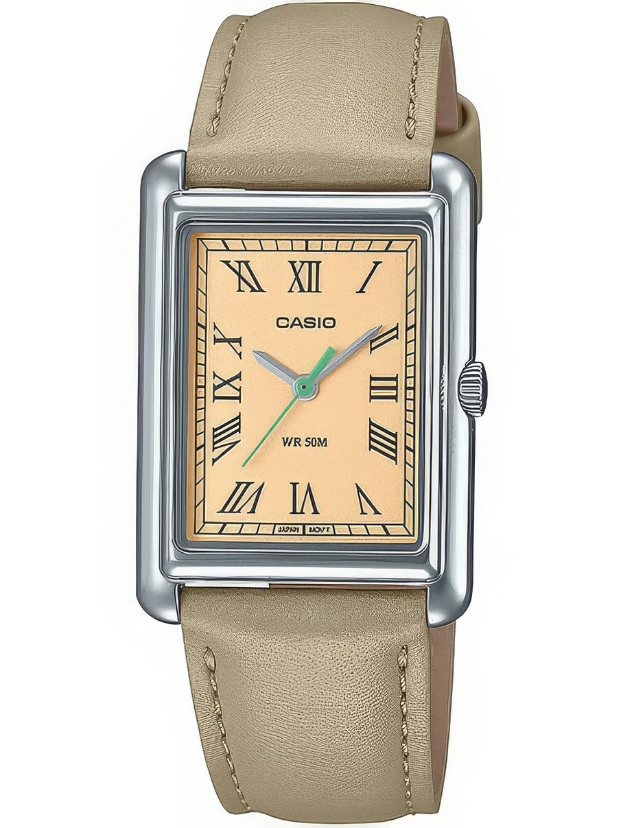 Женские наручные часы Casio Collection LTP-B165L-5B. Точный кварцевый механизм с аналоговой индикацией. В отличие от механических часов, не требуют завода и работают от батареи, показывая отклонение всего несколько секунд в месяц. Ремешок изготовлен из кожи. Гибкость такого ремешка позволяет точно регулировать посадку часов на руке. Корпус изготовлен из высококачественной нержавеющей стали 316L с высокими антикоррозийными свойствами. Прочное, устойчивое к царапинам минеральное стекло защищает часы от повреждений. Часы являются водонепроницаемыми до 5 Бар. Цвет корпуса: Серебристый. Цвет циферблата: Бежевый. Высота (с ушками): 35 мм. Толщина: 8 мм. Гарантия: 2 года.