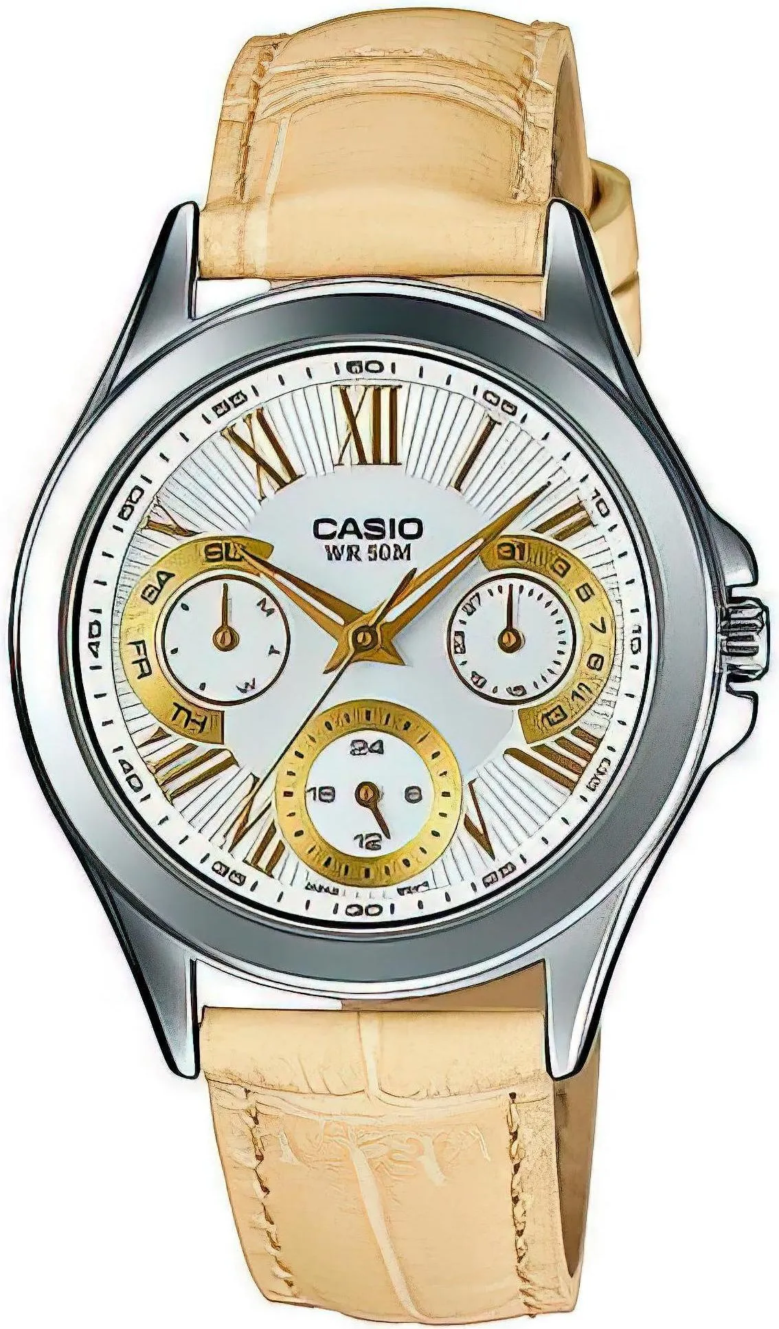 Женские наручные часы Casio Collection LTP-E308L-7A1. Точный кварцевый механизм с аналоговой индикацией. Корпус изготовлен из высококачественной нержавеющей стали 316L с высокими антикоррозийными свойствами. На стрелки и отметки нанесен светонакопительный состав, благодаря этому считывать информацию с циферблата возможно и в темноте. На циферблате отображается текущее число месяца и день недели. Ремешок изготовлен из кожи. Прочное, устойчивое к царапинам минеральное стекло защищает часы от повреждений. Часы являются водонепроницаемыми до 5 Бар. Цвет циферблата: Белый. Ширина (с заводной головкой): 38мм. Толщина: 11мм. Гарантия: 2 года.