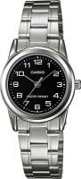 Женские наручные часы в круглом корпусе с центральной секундной стрелкой на черном циферблате выполненные из стального сплава
