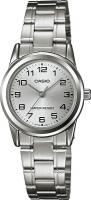 Женские наручные часы в круглом корпусе с центральной секундной стрелкой на серебристом циферблате выполненные из стального сплава