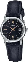 Женские наручные часы Casio Collection LTP-V002L-1B3. Точный кварцевый механизм с аналоговой индикацией. Корпус изготовлен из высококачественной часовой латуни с высокими антикоррозийными свойствами. На циферблате отображается текущее число месяца. Аккумулятор обеспечивает часы достаточным питанием приблизительно на 3 года. Ремешок изготовлен из кожи. Прочное, устойчивое к царапинам минеральное стекло защищает часы от повреждений.Часы являются водонепроницаемыми до 3 Бар. Цвет корпуса: Серебристый. Цвет циферблата: Черный. Гарантия: 2 года.