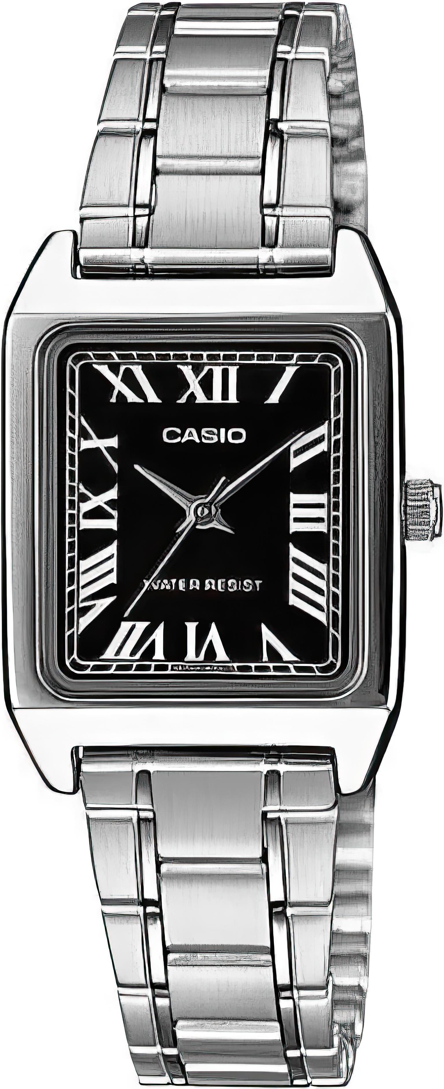 Женские наручные часы Casio Collection LTP-V007D-1B. Точный кварцевый механизм с аналоговой индикацией. В отличие от механических часов, не требуют завода и работают от батареи, показывая отклонение всего несколько секунд в месяц. Браслет из нержавеющей стали обладает высокой прочностью и износостойкостью, обеспечивая долговечность даже при активной эксплуатации. Материал устойчив к коррозии и сохраняет свой внешний вид надолго. Аккумулятор обеспечивает часы достаточным питанием приблизительно на 3 года. Корпус изготовлен из высококачественной часовой латуни с высокими антикоррозийными свойствами. Прочное, устойчивое к царапинам минеральное стекло защищает часы от повреждений. Часы являются водонепроницаемыми до 3 Бар. Цвет корпуса: Серебристый. Цвет циферблата: Черный. Высота (с ушками): 31 мм. Толщина: 7.5 мм. Гарантия: 2 года. Другие наименования модели: LTP-V007D-1BUDF.