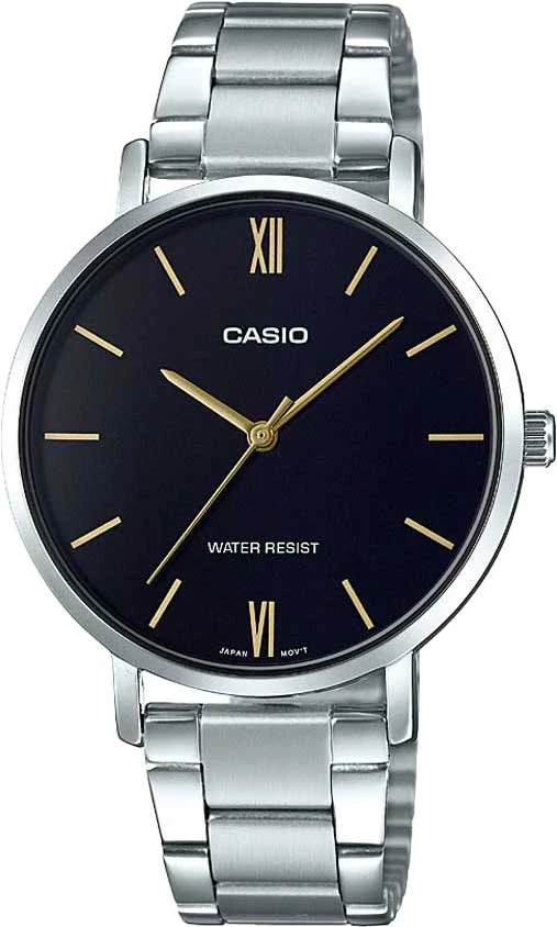 Женские наручные часы Casio Collection LTP-VT01D-1B. Точный кварцевый механизм с аналоговой индикацией. В отличие от механических часов, не требуют завода и работают от батареи, показывая отклонение всего несколько секунд в месяц. Браслет из нержавеющей стали обладает высокой прочностью и износостойкостью, обеспечивая долговечность даже при активной эксплуатации. Материал устойчив к коррозии и сохраняет свой внешний вид надолго. Аккумулятор обеспечивает часы достаточным питанием приблизительно на 3 года. Корпус изготовлен из высококачественной часовой латуни с высокими антикоррозийными свойствами. Прочное, устойчивое к царапинам минеральное стекло защищает часы от повреждений. Часы являются водонепроницаемыми до 3 Бар. Цвет корпуса: Серебристый. Цвет циферблата: Черный. Высота (с ушками): 40 мм. Толщина: 7.9 мм. Гарантия: 2 года. Другие наименования модели: LTP-VT01D-1BUDF.
