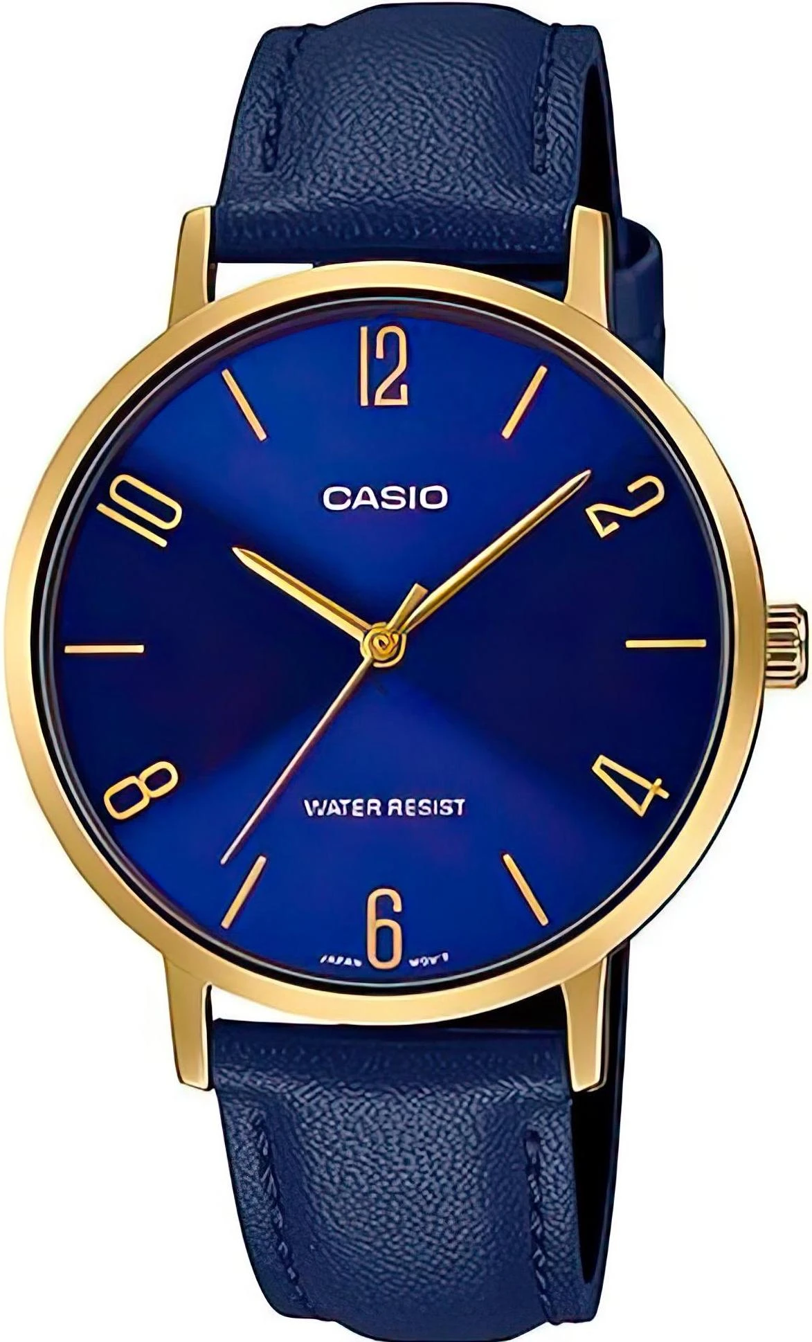 Женские наручные часы Casio Collection LTP-VT01GL-2B. Точный кварцевый механизм с аналоговой индикацией. Корпус изготовлен из высококачественной нержавеющей стали 316L с высокими антикоррозийными свойствами. Ремешок изготовлен из кожи. Прочное, устойчивое к царапинам минеральное стекло защищает часы от повреждений. Часы являются водонепроницаемыми до 3 Бар. Цвет циферблата: Синий. Ширина (с заводной головкой): 34мм. Толщина: 8мм. Гарантия: 2 года.