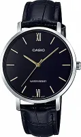 Женские наручные часы Casio Collection LTP-VT01L-1B. Точный кварцевый механизм с аналоговой индикацией. Корпус изготовлен из высококачественной нержавеющей стали 316L с высокими антикоррозийными свойствами. Ремешок изготовлен из кожи. Прочное, устойчивое к царапинам минеральное стекло защищает часы от повреждений. Часы являются водонепроницаемыми до 3 Бар. Цвет циферблата: Черный. Ширина (с заводной головкой): 34мм. Толщина: 8мм. Гарантия: 2 года.