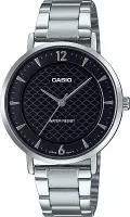 Женские наручные часы Casio Collection LTP-VT04D-1A. Точный кварцевый механизм с аналоговой индикацией. Браслет из нержавеющей стали. Аккумулятор обеспечивает часы достаточным питанием приблизительно на 3 года. Браслет из нержавеющей стали. Прочное, устойчивое к царапинам минеральное стекло защищает часы от повреждений. Часы являются водонепроницаемыми до 3 Бар. Цвет циферблата: Серебристый. Цвет корпуса: Черный. Толщина: 8 мм. Гарантия: 2 года.