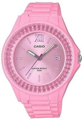 Японские женские кварцевые часы из серии Standart Analogue. Круглый корпус из полимерного материала розового цвета. Имитация камней на пластиковом безеле. Органическое стекло. Водозащита 50м. Розовый пластиковый ремешок с обычной пряжкой.