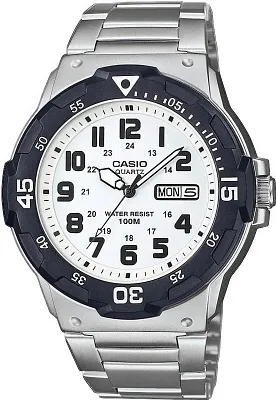 Японский кварцевый механизм, модуль 5125. Точность хода с погрешностью не более от -/+20 сек. в месяц. Механизм работает от батарейки SR626SW в течение 3 лет. • Центральные часовая, минутная и секундная стрелки. • Белый циферблат с метками в виде арабских цифр. • Корпус из полимерного материала с покрытием стального цвета и вращающимся безелем черного цвета. • Задняя крышка из нержавеющей стали. • Стекло из полимерного материала. • Водозащита 100 м. • Регулируемый по длине браслет из нержавеющей стали. • Надежный браслетный замок с тройным сгибом.