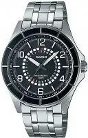 Мужские часы с универсальным дизайном. Необычная индикация даты. Круглый корпус и браслет из нерж. стали. Алюминиевый безель с контрастным покрытием. Минеральное стекло. Водостойкость 50 метров. Японский кварцевый механизм.
