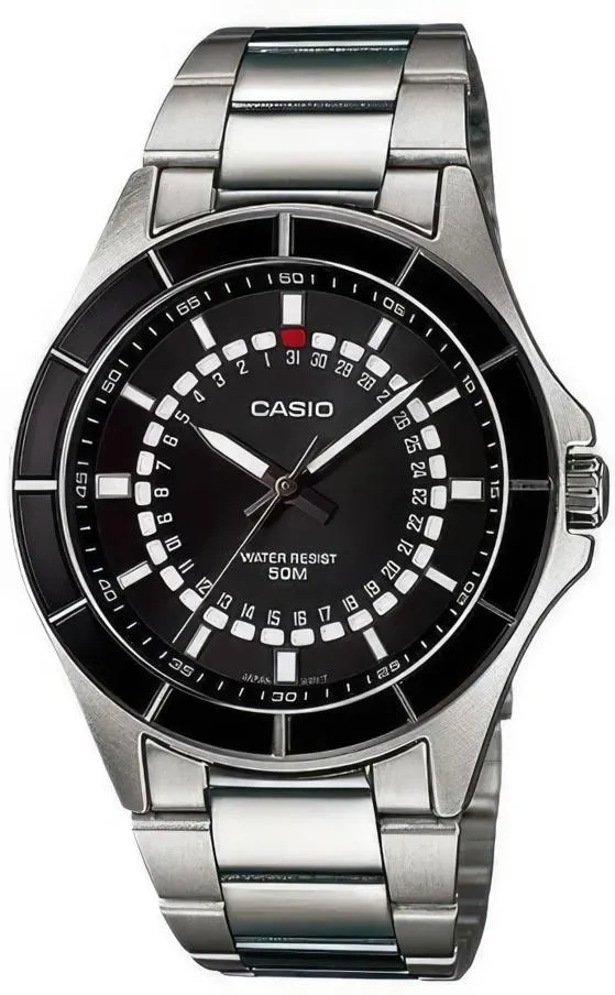 Мужские наручные часы Casio Collection MTF-118D-1A. Точный кварцевый механизм с аналоговой индикацией. Корпус изготовлен из высококачественной нержавеющей стали 316L с высокими антикоррозийными свойствами. На стрелки и отметки нанесен светонакопительный состав, благодаря этому считывать информацию с циферблата возможно и в темноте. На циферблате отображается текущее число месяца. Браслет из нержавеющей стали. Прочное, устойчивое к царапинам минеральное стекло защищает часы от повреждений. Часы являются водонепроницаемыми до 5 Бар. Цвет циферблата: Черный. Ширина (с заводной головкой): 42мм. Толщина: 10мм. Гарантия: 2 года.