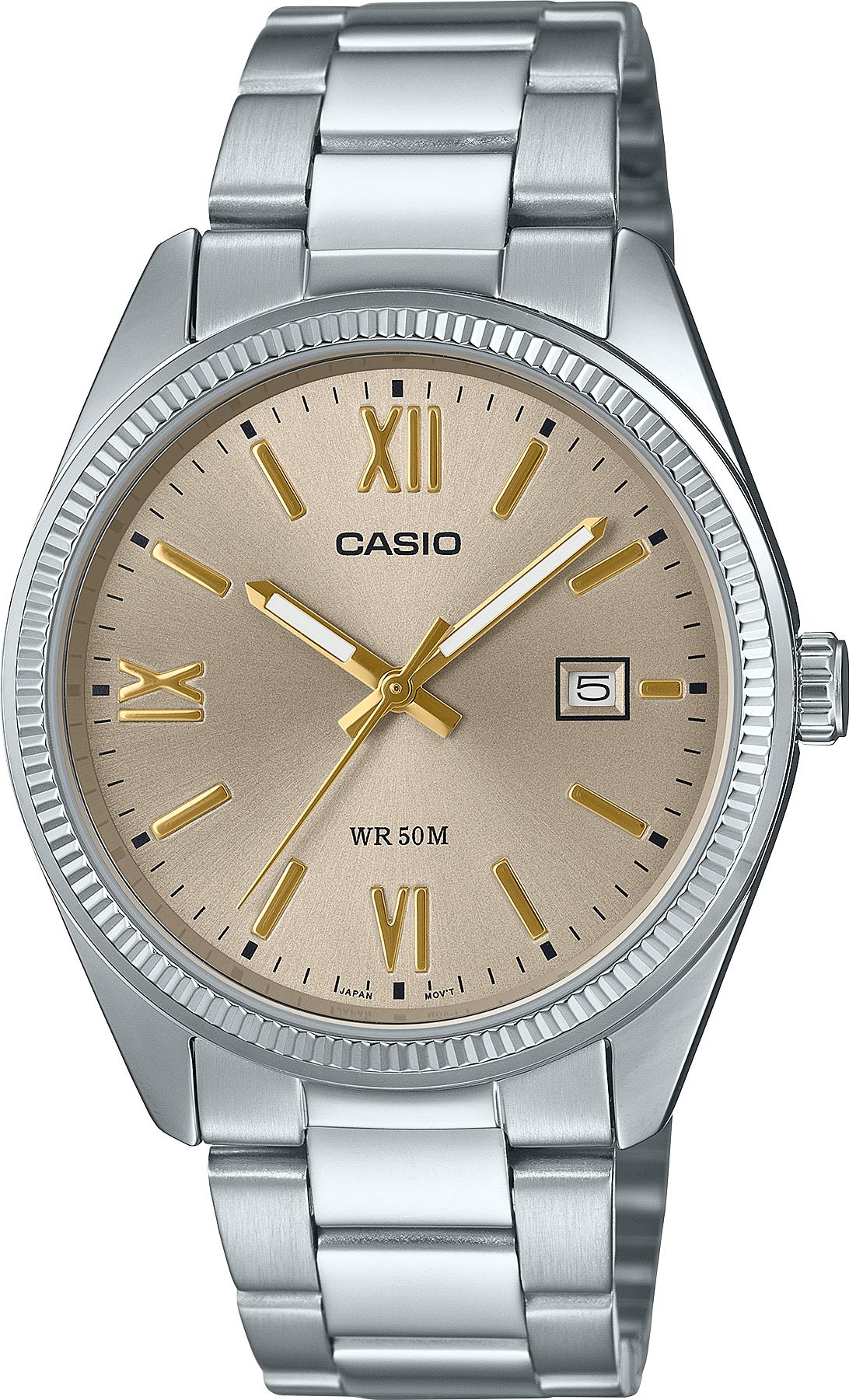 Мужские наручные часы Casio Collection MTP-1302DD-9A. Точный кварцевый механизм с аналоговой индикацией. Браслет из нержавеющей стали. Браслет из нержавеющей стали. Прочное, устойчивое к царапинам минеральное стекло защищает часы от повреждений. На циферблате отображается текущее число месяца. Часы являются водонепроницаемыми до 5 Бар. Цвет циферблата: Серебристый. Цвет корпуса: Золотистый. На стрелки и отметки нанесен светонакопительный состав, благодаря этому считывать информацию с циферблата возможно и в темноте. Толщина: 9 мм. Гарантия: 2 года.