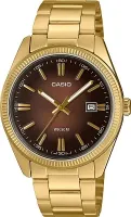 Мужские наручные часы Casio Collection MTP-1302PGC-5A. Точный кварцевый механизм с аналоговой индикацией. Браслет из нержавеющей стали. Аккумулятор обеспечивает часы достаточным питанием приблизительно на 3 года. Браслет из нержавеющей стали. Прочное, устойчивое к царапинам минеральное стекло защищает часы от повреждений. На циферблате отображается текущее число месяца. Часы являются водонепроницаемыми до 5 Бар. Цвет циферблата: Желтое золото. Цвет корпуса: Коричневый. Светодиодная подсветка. Толщина: 9.4 мм. Гарантия: 2 года.