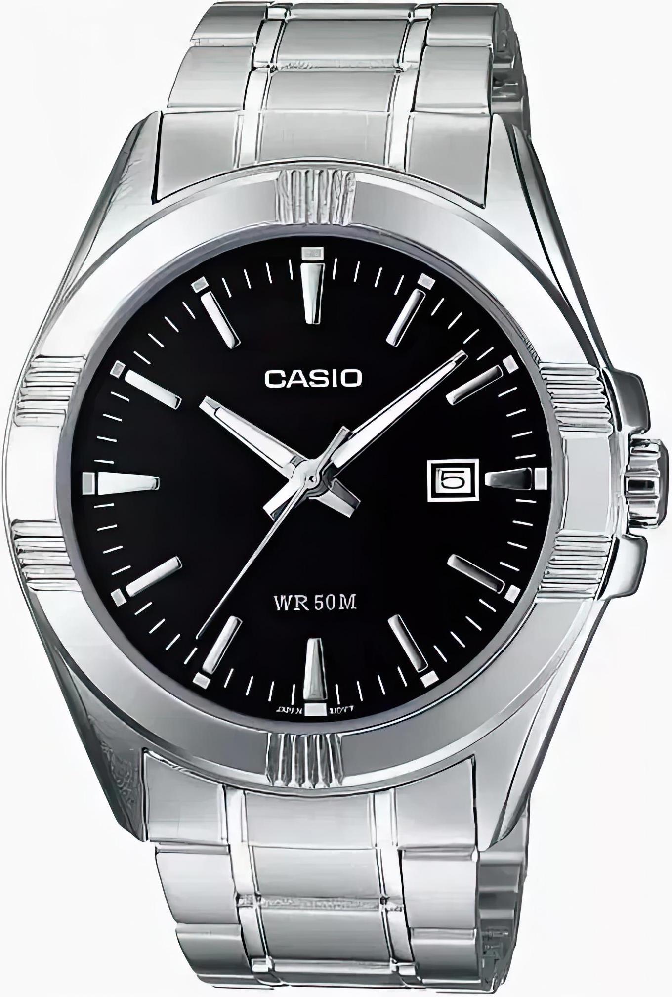 Мужские наручные часы Casio Collection MTP-1308D-1A. Точный кварцевый механизм с аналоговой индикацией. В отличие от механических часов, не требуют завода и работают от батареи, показывая отклонение всего несколько секунд в месяц. На стрелки нанесен светонакопительный состав (светятся в темноте). Браслет из нержавеющей стали обладает высокой прочностью и износостойкостью, обеспечивая долговечность даже при активной эксплуатации. Материал устойчив к коррозии и сохраняет свой внешний вид надолго. Аккумулятор обеспечивает часы достаточным питанием приблизительно на 3 года. Корпус изготовлен из высококачественной часовой латуни с высокими антикоррозийными свойствами. Прочное, устойчивое к царапинам минеральное стекло защищает часы от повреждений. Часы являются водонепроницаемыми до 5 Бар. Цвет корпуса: Серебристый. Цвет циферблата: Черный. Высота (с ушками): 48.9 мм. Толщина: 9.2 мм. Гарантия: 2 года. Другие наименования модели: MTP-1308D-1AVDF, MTP-1308PD-1A, MTP-1308D-1AV, MTP-1308PD-1AVEF.