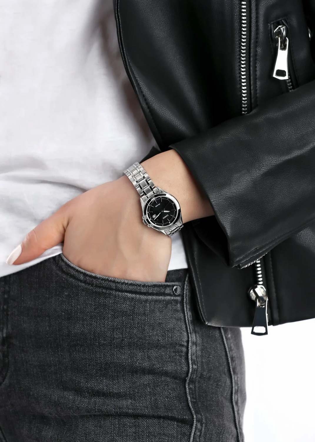 Удобная застежка, расстегиваемая одним касанием. Благодаря своей конструкции она никогда не размыкается полностью, а раскладывается на три части. Это позволяет легко снимать и надевать часы, сводя вероятность их падения или потери при случайном расстегивании к минимуму.