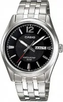 Мужские наручные часы в классическом исполнении с окошком даты и днем недели на стальном браслете.