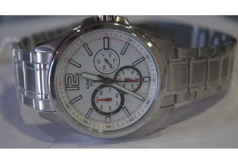 <b>Мужские наручные часы Casio Collection MTP-1355D-7A.</b> Точный кварцевый механизм с аналоговой индикацией. Корпус изготовлен из высококачественной нержавеющей стали 316L с высокими антикоррозийными свойствами. На стрелки и отметки нанесен светонакопительный состав, благодаря этому считывать информацию с циферблата возможно и в темноте. На циферблате отображается текущее число месяца и день недели. Браслет из нержавеющей стали. Прочное, устойчивое к царапинам минеральное стекло защищает часы от повреждений. Часы являются водонепроницаемыми до 5 Бар. Ширина (с заводной головкой): 47мм. Толщина: 9мм. Гарантия: 2 года.