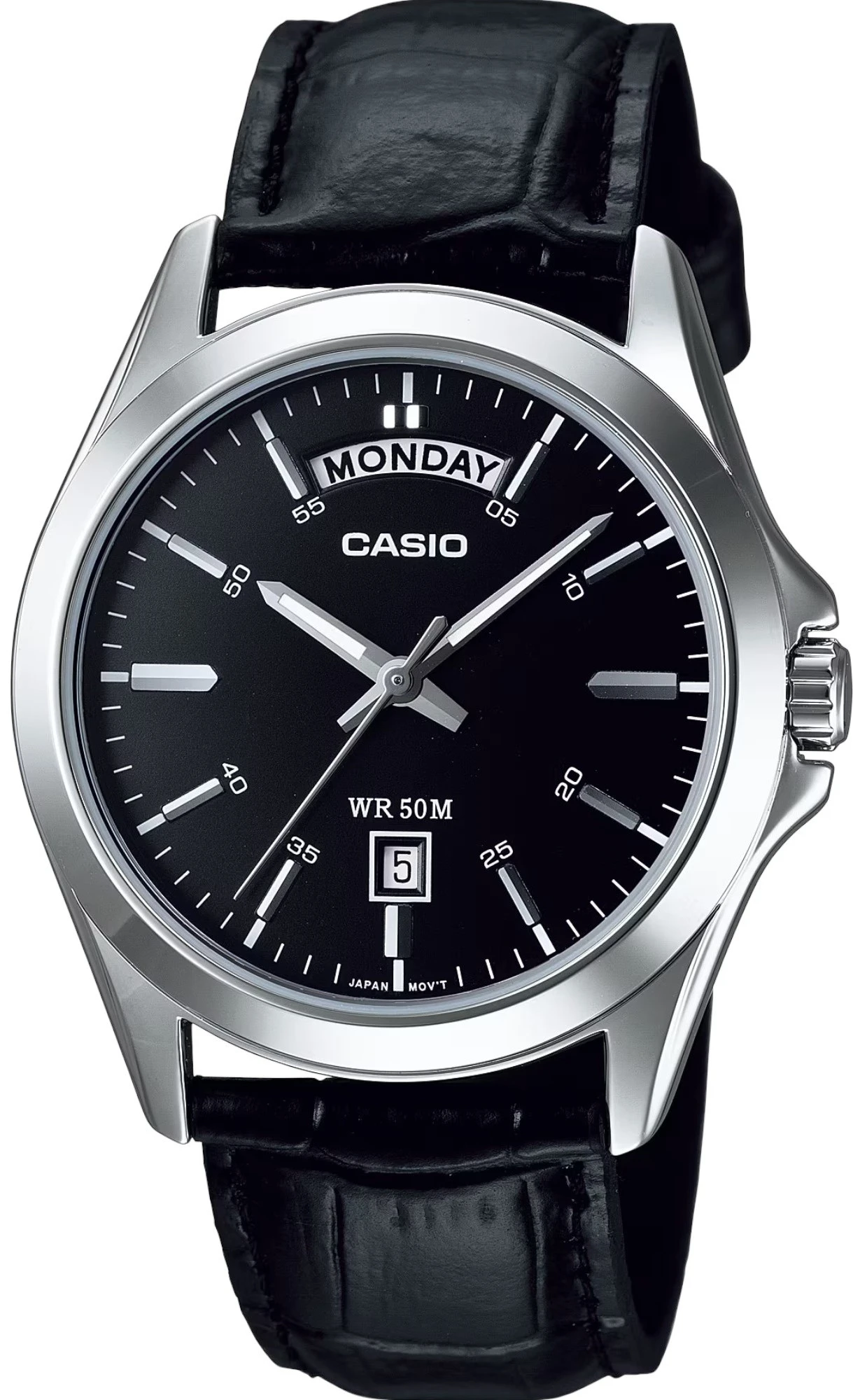 Мужские наручные часы Casio Collection MTP-1370L-1A. Точный кварцевый механизм с аналоговой индикацией. В отличие от механических часов, не требуют завода и работают от батареи, показывая отклонение всего несколько секунд в месяц. На стрелки нанесен светонакопительный состав. Ремешок изготовлен из кожи. Гибкость такого ремешка позволяет точно регулировать посадку часов на руке. Аккумулятор обеспечивает часы достаточным питанием приблизительно на 3 года. Корпус изготовлен из высококачественной часовой латуни с высокими антикоррозийными свойствами. Прочное, устойчивое к царапинам минеральное стекло защищает часы от повреждений. Часы являются водонепроницаемыми до 5 Бар. Цвет корпуса: Серебристый. Цвет циферблата: Черный. Высота (с ушками): 45 мм. Толщина: 8.8 мм. Гарантия: 2 года. Другие наименования модели: 1370L-1AMTP, MTP-1370L-1AVDF, MTP-1370L-1AVD.