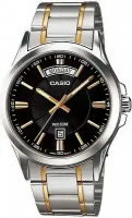 Мужские наручные часы Casio Collection MTP-1381G-1A. Точный кварцевый механизм с аналоговой индикацией. Корпус изготовлен из высококачественной нержавеющей стали 316L с высокими антикоррозийными свойствами. На стрелки и отметки нанесен светонакопительный состав, благодаря этому считывать информацию с циферблата возможно и в темноте. На циферблате отображается текущее число месяца и день недели. Браслет из нержавеющей стали. Прочное, устойчивое к царапинам минеральное стекло защищает часы от повреждений. Часы являются водонепроницаемыми до 5 Бар. Цвет циферблата: Черный. Ширина (с заводной головкой): 47мм. Толщина: 9мм. Гарантия: 2 года.