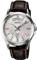 Наручные часы с современным универсальным дизайном для мужчин. Доступная цена. Корпус из металлического сплава с покрытием. Кожаный ремешок. Минеральное стекло. Точный кварцевый механизм, увеличенная индикация дня недели.