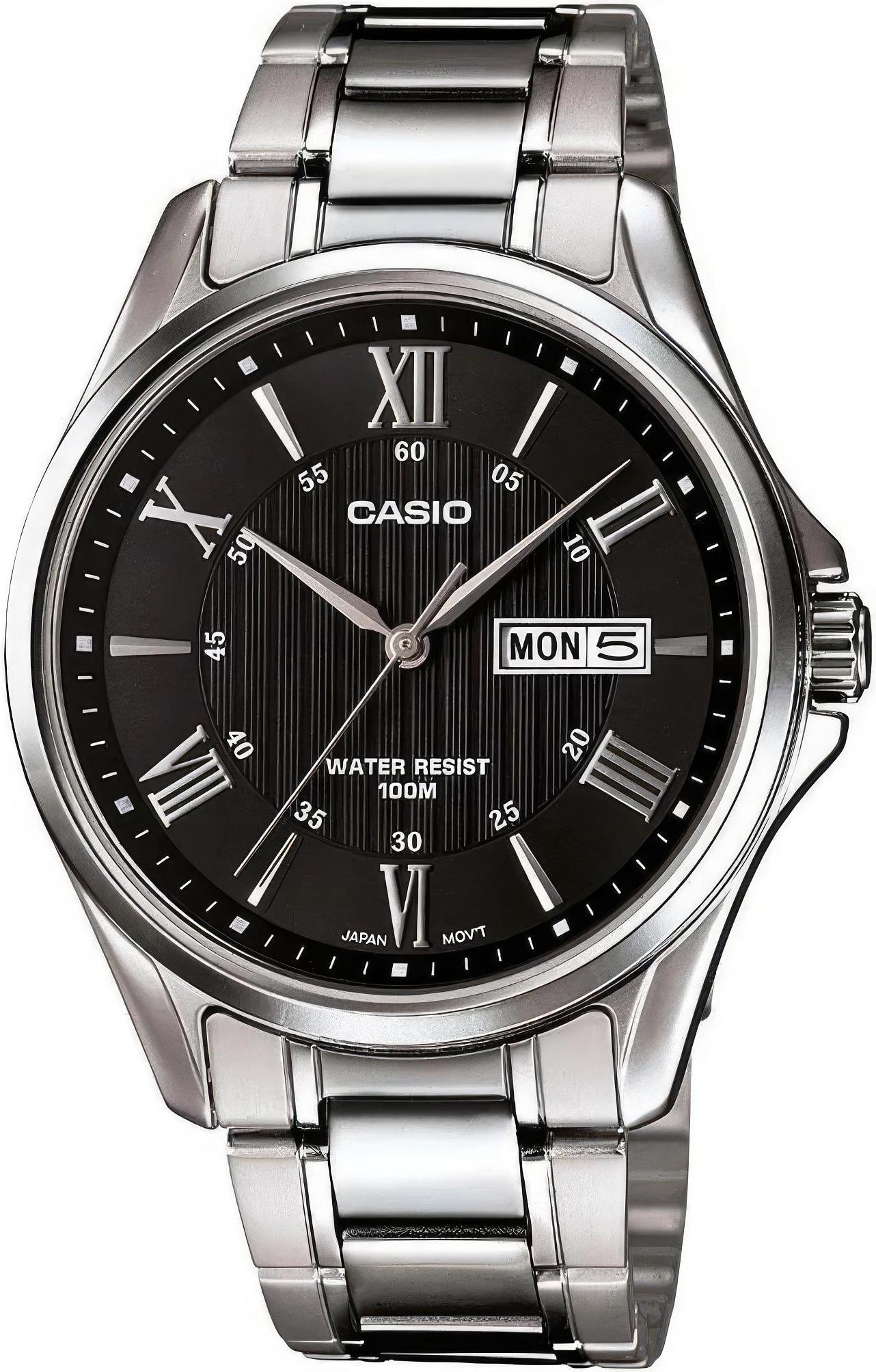 Мужские наручные часы Casio Collection MTP-1384D-1A. Точный кварцевый механизм с аналоговой индикацией. В отличие от механических часов, не требуют завода и работают от батареи, показывая отклонение всего несколько секунд в месяц. Браслет из нержавеющей стали обладает высокой прочностью и износостойкостью, обеспечивая долговечность даже при активной эксплуатации. Материал устойчив к коррозии и сохраняет свой внешний вид надолго. Корпус изготовлен из высококачественной часовой латуни с высокими антикоррозийными свойствами. Прочное, устойчивое к царапинам минеральное стекло защищает часы от повреждений. Часы являются водонепроницаемыми до 10 Бар. Цвет корпуса: Серебристый. Цвет циферблата: Черный. Толщина: 10 мм. Гарантия: 2 года. Другие наименования модели: MTP-1384D-1AVDF, MTP-1384D-1AVEF.
