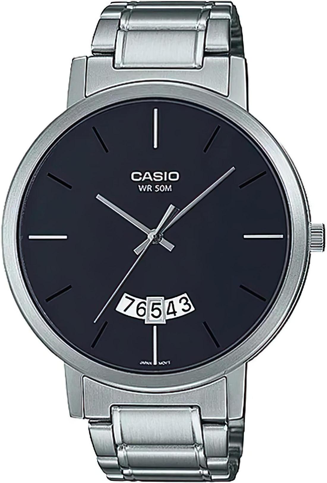 Мужские наручные часы Casio Collection MTP-B100D-1E. Точный кварцевый механизм с аналоговой индикацией. Корпус изготовлен из высококачественной нержавеющей стали 316L с высокими антикоррозийными свойствами. На циферблате отображается текущее число месяца. Браслет из нержавеющей стали. Прочное, устойчивое к царапинам минеральное стекло защищает часы от повреждений. Часы являются водонепроницаемыми до 5 Бар. Цвет корпуса: Серебристый. Цвет циферблата: Черный. Гарантия: 2 года.