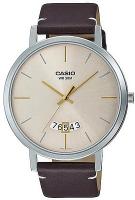 Мужские наручные часы Casio Collection MTP-B100L-9E. Точный кварцевый механизм с аналоговой индикацией. Корпус изготовлен из высококачественной нержавеющей стали 316L с высокими антикоррозийными свойствами. На циферблате отображается текущее число месяца. Ремешок изготовлен из кожи. Прочное, устойчивое к царапинам минеральное стекло защищает часы от повреждений. Часы являются водонепроницаемыми до 5 Бар. Цвет корпуса: Серебристый. Цвет циферблата: Бежевый. Гарантия: 2 года.