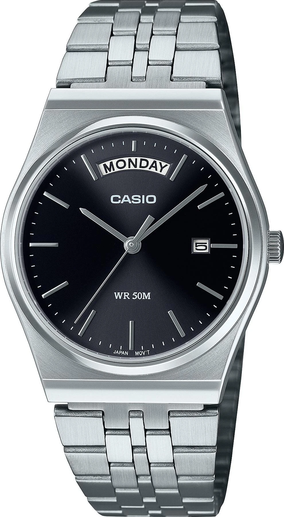 Мужские наручные часы Casio Collection MTP-B146D-1A. Точный кварцевый механизм. Браслет из нержавеющей стали. Аккумулятор обеспечивает часы достаточным питанием приблизительно на 3 года. Корпус изготовлен из высококачественной нержавеющей стали 316L с высокими антикоррозийными свойствами. Прочное, устойчивое к царапинам минеральное стекло защищает часы от повреждений. На циферблате отображается текущее число месяца и день недели. Часы являются водонепроницаемыми до 5 Бар. Цвет циферблата: Серебристый. Цвет корпуса: Черный. Толщина: 8 мм. Гарантия: 2 года.