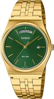 Мужские наручные часы Casio Collection MTP-B146G-3A. Точный кварцевый механизм с аналоговой индикацией. Браслет из нержавеющей стали. Аккумулятор обеспечивает часы достаточным питанием приблизительно на 3 года. Браслет из нержавеющей стали. Прочное, устойчивое к царапинам минеральное стекло защищает часы от повреждений. На циферблате отображается текущее число месяца и день недели. Часы являются водонепроницаемыми до 5 Бар. Цвет циферблата: Желтое золото. Цвет корпуса: Зеленый. Толщина: 8 мм. Гарантия: 2 года.