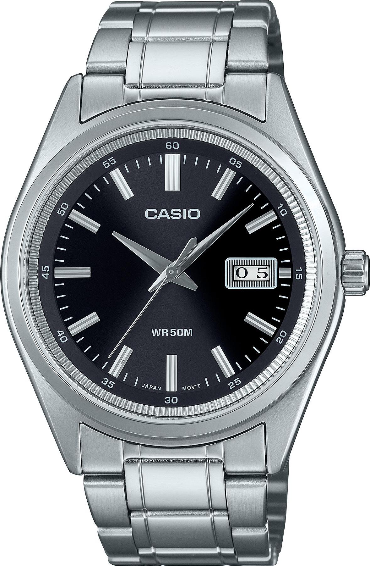 Мужские наручные часы Casio Collection MTP-B180D-1A1. Точный кварцевый механизм с аналоговой индикацией. Браслет из нержавеющей стали. После настройки автоматический календарь всегда отображает точную дату. Аккумулятор обеспечивает часы достаточным питанием приблизительно на 3 года. Браслет из нержавеющей стали. Прочное, устойчивое к царапинам минеральное стекло защищает часы от повреждений. На циферблате отображается текущее число месяца. Часы являются водонепроницаемыми до 5 Бар. Цвет циферблата: Серебристый. Цвет корпуса: Черный. На стрелки и отметки нанесен светонакопительный состав, благодаря этому считывать информацию с циферблата возможно и в темноте. Высота (с ушками): 48 мм. Толщина: 9 мм. Гарантия: 2 года.
