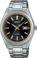 Мужские наручные часы Casio Collection MTP-B180D-1A2. Точный кварцевый механизм с аналоговой индикацией. Браслет из нержавеющей стали. После настройки автоматический календарь всегда отображает точную дату. Аккумулятор обеспечивает часы достаточным питанием приблизительно на 3 года. Браслет из нержавеющей стали. Прочное, устойчивое к царапинам минеральное стекло защищает часы от повреждений. На циферблате отображается текущее число месяца. Часы являются водонепроницаемыми до 5 Бар. Цвет циферблата: Серебристый. Цвет корпуса: Черный. Цвет корпуса: Золотистый. На стрелки и отметки нанесен светонакопительный состав, благодаря этому считывать информацию с циферблата возможно и в темноте. Высота (с ушками): 48 мм. Толщина: 9 мм. Гарантия: 2 года.