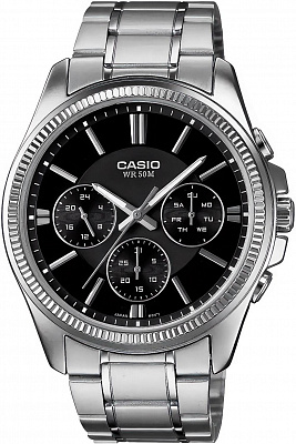 Мужские часы Casio MTP-B195L-3A — это классическая модель с лаконичным дизайном, ориентированная на повседневное и деловое использование. Сдержанный внешний вид делает часы универсальным аксессуаром, подходящим к офисному и повседневному стилю. В основе модели используется кварцевый механизм Casio калибра 5664, обеспечивающий точный и стабильный ход без необходимости подзавода. На циферблате расположено окно текущей даты, которое повышает удобство при ежедневном использовании. Корпус выполнен из нержавеющей стали, а циферблат защищён минеральным стеклом, устойчивым к мелким царапинам. Стрелки покрыты люминесцентным напылением, благодаря чему время легко считывается в условиях недостаточного освещения. Кожаный ремешок подчёркивает классический характер модели и обеспечивает комфортную посадку на запястье. Размер корпуса 38 x 46.5 x 8.3 мм (Ш x Д x В) делает часы удобными и универсальными для постоянного ношения. Водонепроницаемость 50 метров (5 АТМ/bar): выдерживают мытье рук, попадание крупных капель.