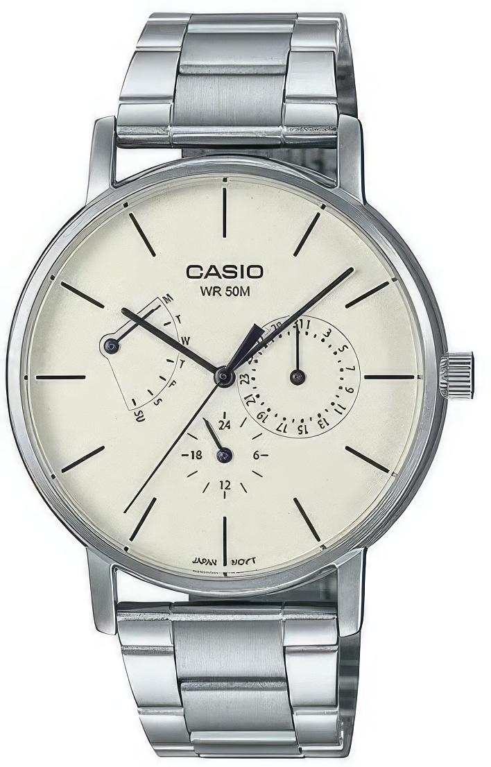 Мужские наручные часы Casio Collection MTP-E320D-9E. Точный кварцевый механизм с аналоговой индикацией. Корпус изготовлен из высококачественной нержавеющей стали 316L с высокими антикоррозийными свойствами. На циферблате отображается текущее число месяца и день недели. Браслет из нержавеющей стали. Прочное, устойчивое к царапинам минеральное стекло защищает часы от повреждений. Часы являются водонепроницаемыми до 5 Бар. Цвет корпуса: Серебристый. Ширина (с заводной головкой): 47мм. Толщина: 10мм. Гарантия: 2 года.