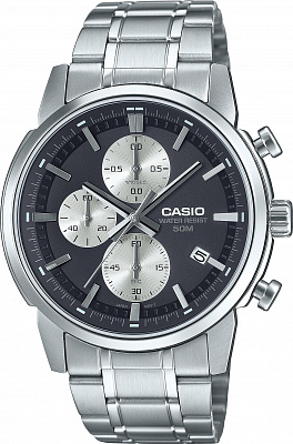 Мужские наручные часы Casio Collection MTP-E510D-8A. Точный кварцевый механизм с аналоговой индикацией. Браслет из нержавеющей стали. Функция хронографа. Браслет из нержавеющей стали. Прочное, устойчивое к царапинам минеральное стекло защищает часы от повреждений. На циферблате отображается текущее число месяца. Часы являются водонепроницаемыми до 5 Бар. Цвет циферблата: Серебристый. Цвет корпуса: Серый. Высота (с ушками): 46 мм. Толщина: 11 мм. Гарантия: 2 года.