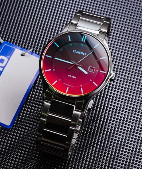Мужские наручные часы Casio Collection MTP-E605D-1E. Точный кварцевый механизм с аналоговой индикацией. Браслет из нержавеющей стали. Аккумулятор обеспечивает часы достаточным питанием приблизительно на 3 года. Браслет из нержавеющей стали. Прочное, устойчивое к царапинам минеральное стекло защищает часы от повреждений. На циферблате отображается текущее число месяца. Часы являются водонепроницаемыми до 5 Бар. Цвет циферблата: Серебристый. Цвет корпуса: Красный. Цвет корпуса: Черный. Толщина: 9 мм. Гарантия: 2 года.