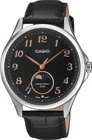 Стильные мужские кварцевые часы с классическим циферблатом, отображающим время с помощью центральных часовой, минутной и секундной стрелок. Дополнительная функция – индикация фаз Луны. Время легко читается благодаря арабским цифрам. Корпус из прочной нержавеющей стали имеет круглую форму и дополнен надежным кожаным браслетом. Защиту циферблата обеспечивает минеральное стекло, устойчивое к царапинам. Часы обладают водостойкостью WR 50, что позволяет мыть руки и не бояться дождя.