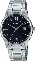 Мужские наручные часы Casio Collection MTP-V002D-1B3. Точный кварцевый механизм с аналоговой индикацией. В отличие от механических часов, не требуют завода и работают от батареи, показывая отклонение всего несколько секунд в месяц. Браслет из нержавеющей стали обладает высокой прочностью и износостойкостью, обеспечивая долговечность даже при активной эксплуатации. Материал устойчив к коррозии и сохраняет свой внешний вид надолго. Корпус изготовлен из высококачественной часовой латуни с высокими антикоррозийными свойствами. Прочное, устойчивое к царапинам минеральное стекло защищает часы от повреждений. Часы являются водонепроницаемыми до 3 Бар. Цвет циферблата: Черный. Высота (с ушками): 44 мм. Толщина: 9.6 мм. Гарантия: 2 года. Другие наименования модели: MTP-V002D-1B3DF, MTP-V002D-1B3UDF.