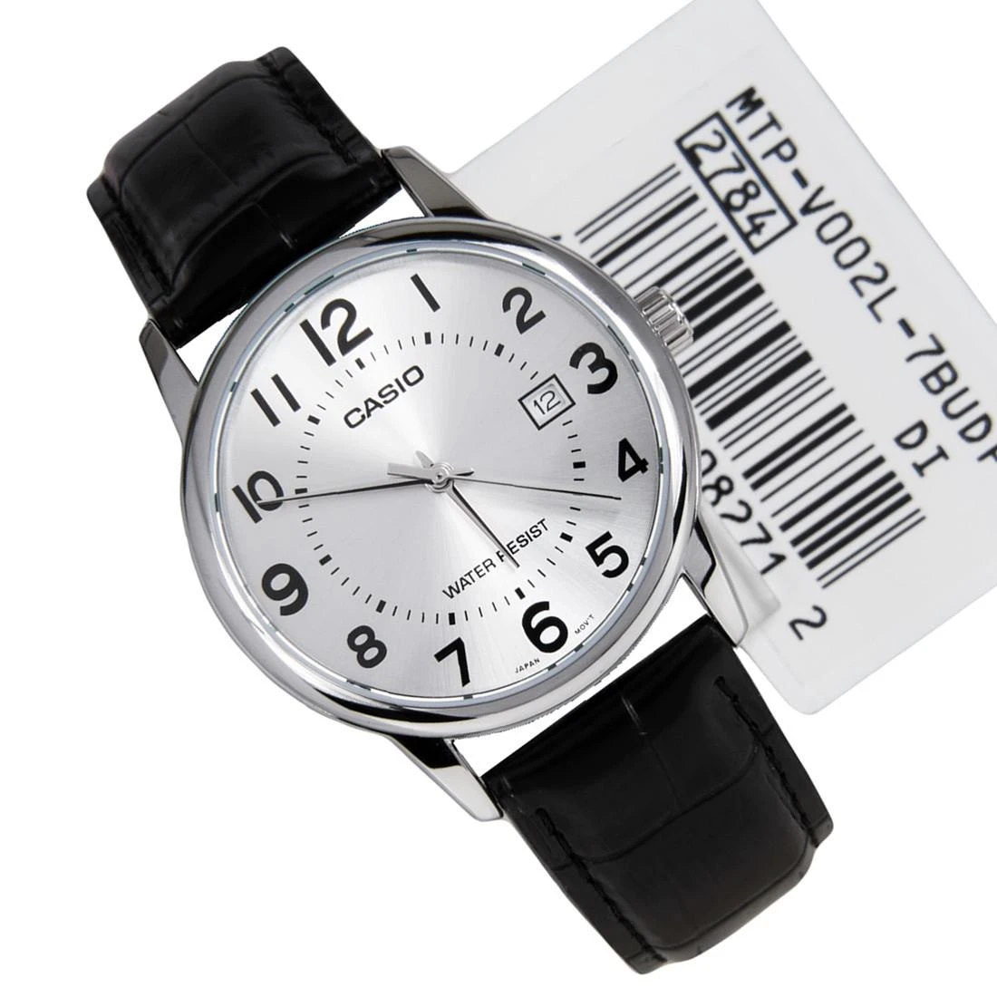 <b>Мужские наручные часы Casio Collection MTP-V002L-7B.</b> Точный кварцевый механизм с аналоговой индикацией. Корпус изготовлен из высококачественной нержавеющей стали 316L с высокими антикоррозийными свойствами. На циферблате отображается текущее число месяца. Ремешок изготовлен из кожи. Прочное, устойчивое к царапинам минеральное стекло защищает часы от повреждений. Часы являются водонепроницаемыми до 3 Бар. Ширина (с заводной головкой): 37мм. Толщина: 10мм. Гарантия: 2 года.