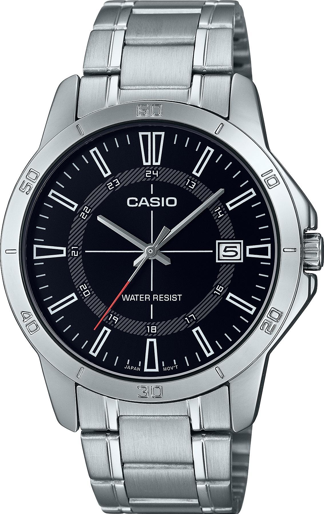 Мужские наручные часы Casio Collection MTP-V004D-1C. Точный кварцевый механизм с аналоговой индикацией. В отличие от механических часов, не требуют завода и работают от батареи, показывая отклонение всего несколько секунд в месяц. Браслет из нержавеющей стали обладает высокой прочностью и износостойкостью, обеспечивая долговечность даже при активной эксплуатации. Материал устойчив к коррозии и сохраняет свой внешний вид надолго. Аккумулятор обеспечивает часы достаточным питанием приблизительно на 3 года. Корпус изготовлен из высококачественной часовой латуни с высокими антикоррозийными свойствами. Прочное, устойчивое к царапинам минеральное стекло защищает часы от повреждений. Часы являются водонепроницаемыми до 3 Бар. Цвет корпуса: Серебристый. Цвет циферблата: Черный. Высота (с ушками): 47 мм. Толщина: 8.3 мм. Гарантия: 2 года. Другие наименования модели: MTP-V004D-1CUDF.