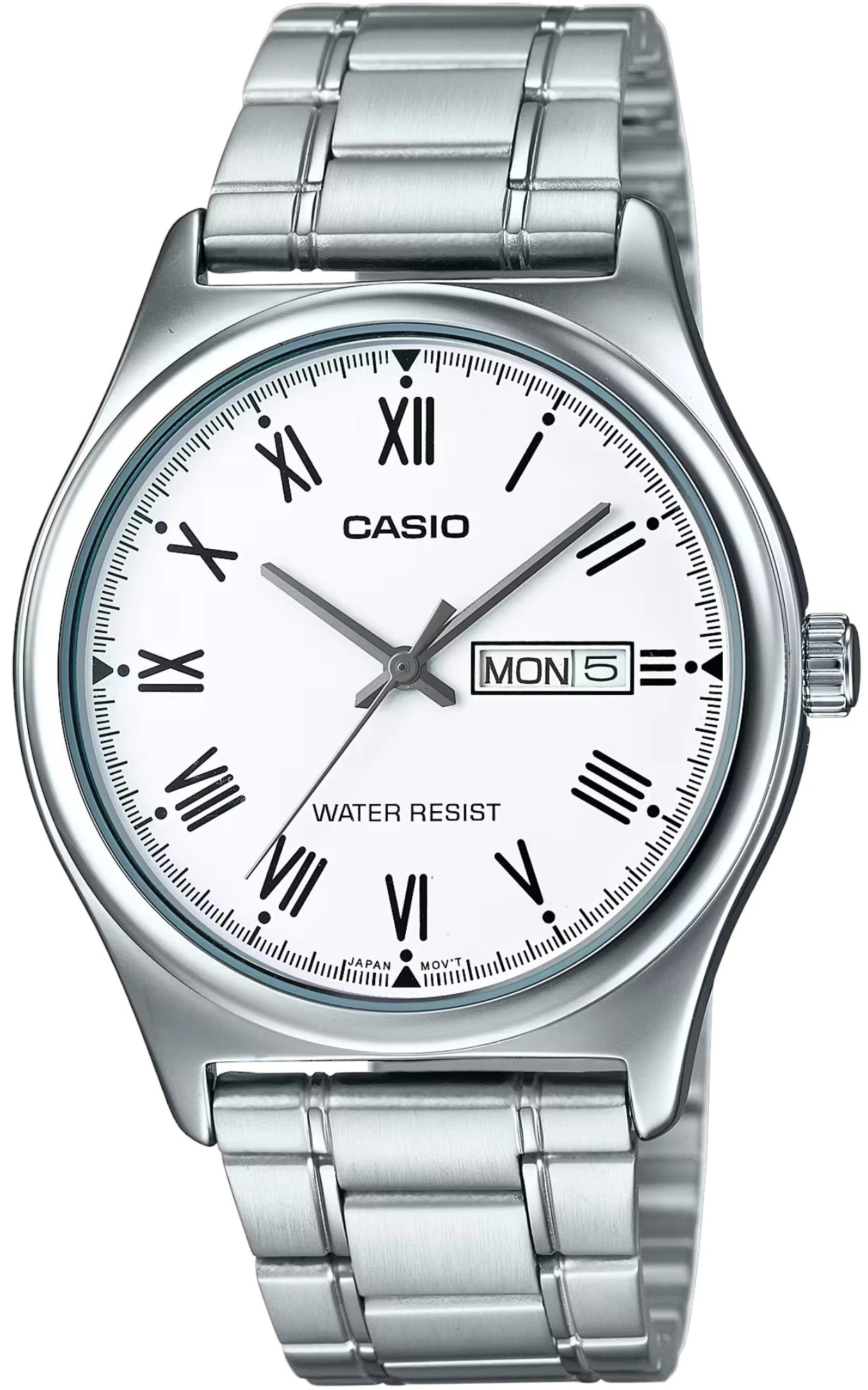 Мужские наручные часы Casio Collection MTP-V006D-7B. Точный кварцевый механизм с аналоговой индикацией. В отличие от механических часов, не требуют завода и работают от батареи, показывая отклонение всего несколько секунд в месяц. Браслет из нержавеющей стали обладает высокой прочностью и износостойкостью, обеспечивая долговечность даже при активной эксплуатации. Материал устойчив к коррозии и сохраняет свой внешний вид надолго. Аккумулятор обеспечивает часы достаточным питанием приблизительно на 2 года. Корпус изготовлен из высококачественной часовой латуни с высокими антикоррозийными свойствами. Прочное, устойчивое к царапинам минеральное стекло защищает часы от повреждений. Часы являются водонепроницаемыми до 3 Бар. Цвет корпуса: Серебристый. Цвет циферблата: Белый. Высота (с ушками): 45.1 мм. Толщина: 9.4 мм. Гарантия: 2 года. Другие наименования модели: MTP-V006D-7BUDF.