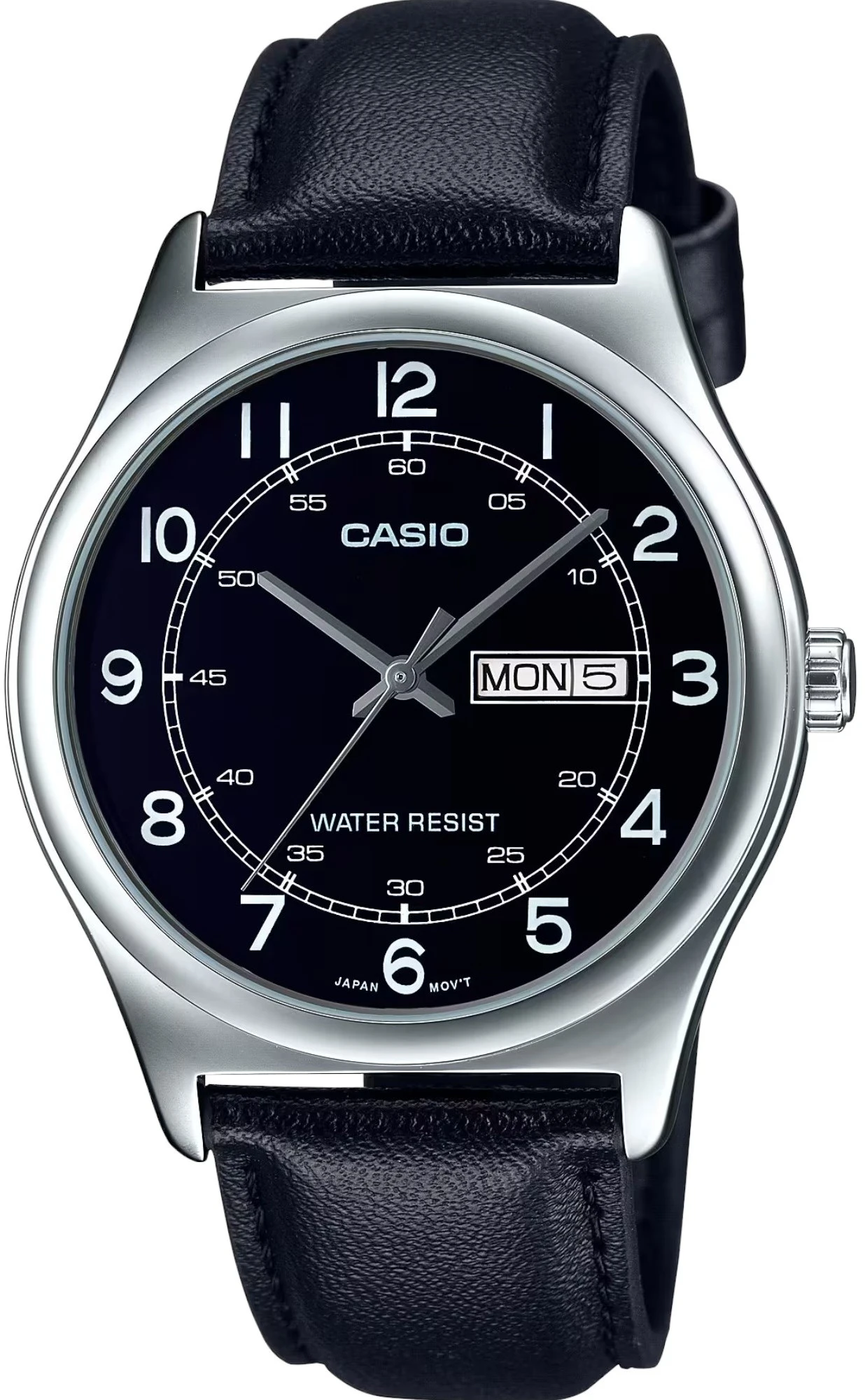Мужские наручные часы Casio Collection MTP-V006L-1B2. Точный кварцевый механизм с аналоговой индикацией. В отличие от механических часов, не требуют завода и работают от батареи, показывая отклонение всего несколько секунд в месяц. Ремешок изготовлен из кожи. Гибкость такого ремешка позволяет точно регулировать посадку часов на руке. Аккумулятор обеспечивает часы достаточным питанием приблизительно на 2 года. Корпус изготовлен из высококачественной часовой латуни с высокими антикоррозийными свойствами. Прочное, устойчивое к царапинам минеральное стекло защищает часы от повреждений. Часы являются водонепроницаемыми до 3 Бар. Цвет корпуса: Серебристый. Цвет циферблата: Черный. Высота (с ушками): 45.1 мм. Толщина: 9.4 мм. Гарантия: 2 года. Другие наименования модели: MTP-V006L-1B2UDF.