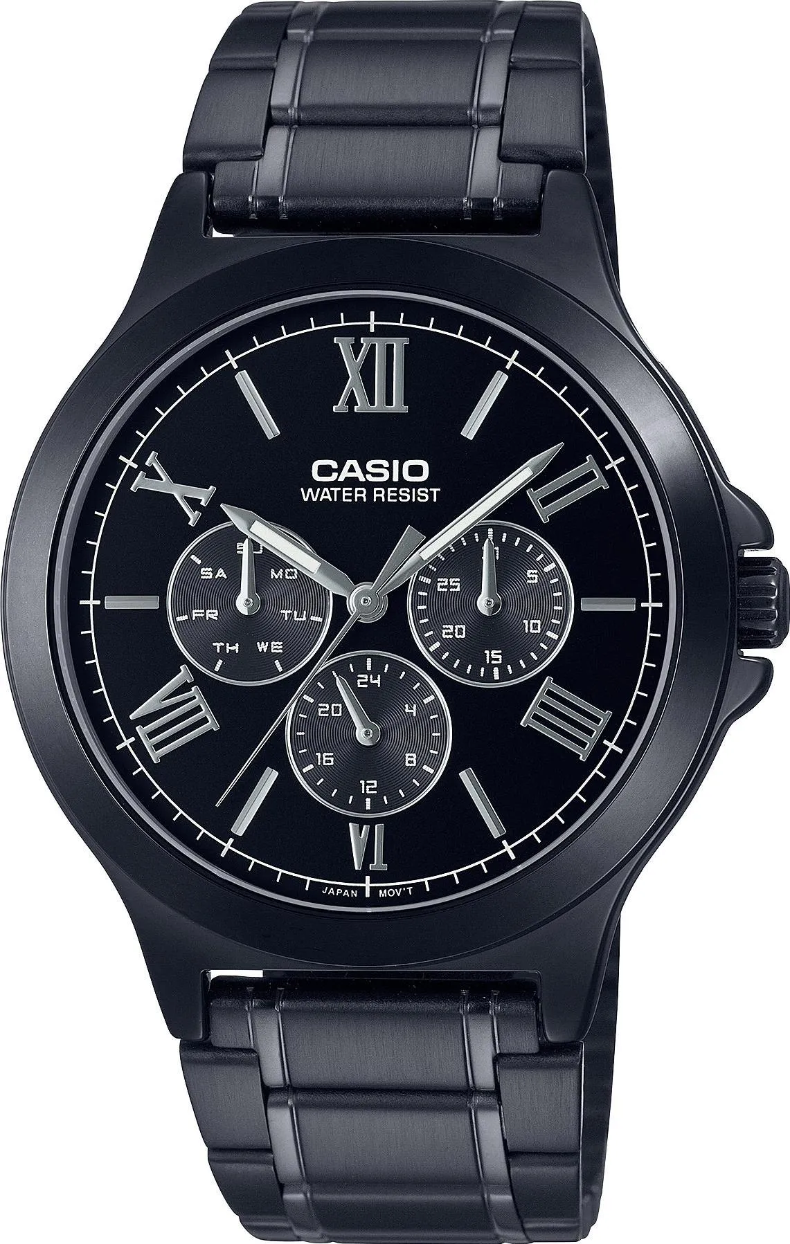 Мужские наручные часы Casio Collection MTP-V300B-1A. Точный кварцевый механизм с аналоговой индикацией. Корпус изготовлен из высококачественной нержавеющей стали 316L с высокими антикоррозийными свойствами. На стрелки и отметки нанесен светонакопительный состав, благодаря этому считывать информацию с циферблата возможно и в темноте. На циферблате отображается текущее число месяца и день недели. Аккумулятор обеспечивает часы достаточным питанием приблизительно на 3 года. Отображение времени возможно в 12-часовом или 24-часовом формате. Браслет из нержавеющей стали. Прочное, устойчивое к царапинам минеральное стекло защищает часы от повреждений. Часы являются водонепроницаемыми до 3 Бар. Цвет корпуса: Черный. Цвет циферблата: Черный. Ширина (с заводной головкой): 47мм. Толщина: 9мм. Гарантия: 2 года.