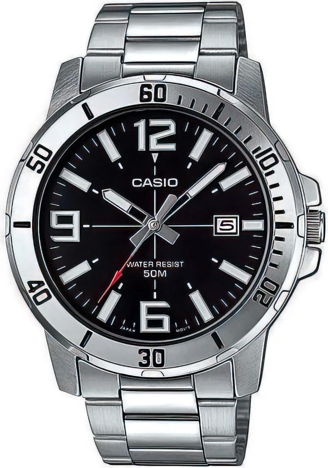 Мужские часы в универсальном стиле. Доступная цена. Круглый металлический корпус и браслет из нержавеющей стали. Безель с гравированной разметкой. Минеральное стекло. Водозащита 5 АТМ. Японский кварцевый механизм.