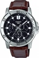 Мужские наручные часы Casio Collection MTP-VD02D-1E. Точный кварцевый механизм с аналоговой индикацией. Корпус изготовлен из высококачественной нержавеющей стали 316L с высокими антикоррозийными свойствами. На стрелки и отметки нанесен светонакопительный состав, благодаря этому считывать информацию с циферблата возможно и в темноте. На циферблате отображается текущее число месяца. Аккумулятор обеспечивает часы достаточным питанием приблизительно на 3 года. Браслет из нержавеющей стали. Прочное, устойчивое к царапинам минеральное стекло защищает часы от повреждений. Часы являются водонепроницаемыми до 3 Бар. Цвет корпуса: Серебристый. Цвет циферблата: Черный. Ширина (с заводной головкой): 48мм. Толщина: 10мм. Гарантия: 2 года.