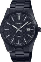 Мужские наручные часы Casio Collection MTP-VD03B-1A. Точный кварцевый механизм с аналоговой индикацией. В отличие от механических часов, не требуют завода и работают от батареи, показывая отклонение всего несколько секунд в месяц. На стрелки и отметки нанесен светонакопительный состав, благодаря этому считывать информацию с циферблата возможно и в темноте. Браслет из нержавеющей стали обладает высокой прочностью и износостойкостью, обеспечивая долговечность даже при активной эксплуатации. Материал устойчив к коррозии и сохраняет свой внешний вид надолго. Аккумулятор обеспечивает часы достаточным питанием приблизительно на 3 года. Корпус изготовлен из высококачественной часовой латуни с высокими антикоррозийными свойствами. Прочное, устойчивое к царапинам минеральное стекло защищает часы от повреждений. Часы являются водонепроницаемыми до 3 Бар. Цвет циферблата: Черный. Высота (с ушками): 48 мм. Толщина: 9.6 мм. Гарантия: 2 года. Другие наименования модели: MTP-VD03B-1AUDF.