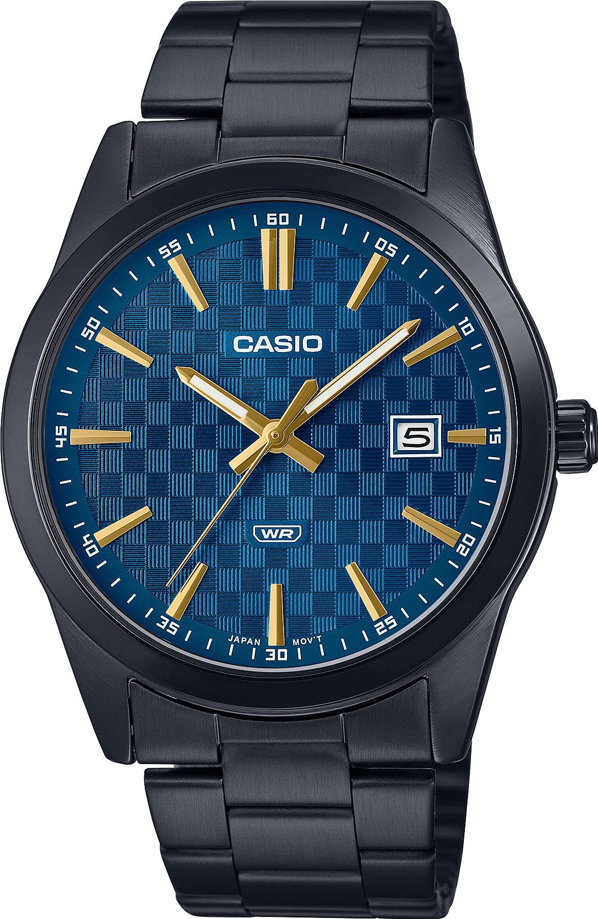 Мужские наручные часы Casio Collection MTP-VD03B-2A. Точный кварцевый механизм с аналоговой индикацией. В отличие от механических часов, не требуют завода и работают от батареи, показывая отклонение всего несколько секунд в месяц. На стрелки и отметки нанесен светонакопительный состав, благодаря этому считывать информацию с циферблата возможно и в темноте. Браслет из нержавеющей стали обладает высокой прочностью и износостойкостью, обеспечивая долговечность даже при активной эксплуатации. Материал устойчив к коррозии и сохраняет свой внешний вид надолго. Аккумулятор обеспечивает часы достаточным питанием приблизительно на 3 года. Корпус изготовлен из высококачественной часовой латуни с высокими антикоррозийными свойствами. Прочное, устойчивое к царапинам минеральное стекло защищает часы от повреждений. Часы являются водонепроницаемыми до 3 Бар. Цвет циферблата: Синий. Высота (с ушками): 48 мм. Толщина: 9.6 мм. Гарантия: 2 года.