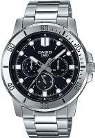 Мужские наручные часы Casio Collection MTP-VD300D-1E. Точный кварцевый механизм с аналоговой индикацией. В отличие от механических часов, не требуют завода и работают от батареи, показывая отклонение всего несколько секунд в месяц. На стрелки и отметки нанесен светонакопительный состав, благодаря этому считывать информацию с циферблата возможно и в темноте. Браслет из нержавеющей стали обладает высокой прочностью и износостойкостью, обеспечивая долговечность даже при активной эксплуатации. Материал устойчив к коррозии и сохраняет свой внешний вид надолго. Отображение времени возможно в 12-часовом или 24-часовом формате. Аккумулятор обеспечивает часы достаточным питанием приблизительно на 3 года. Корпус изготовлен из высококачественной часовой латуни с высокими антикоррозийными свойствами. Прочное, устойчивое к царапинам минеральное стекло защищает часы от повреждений. Часы являются водонепроницаемыми до 3 Бар. Цвет корпуса: Серебристый. Цвет циферблата: Черный. Высота (с ушками): 49 мм. Толщина: 8.7 мм. Гарантия: 2 года. Другие наименования модели: MTP-VD300D-1EUDF, MTP-VD300D-1.