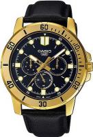 Мужские наручные часы Casio Collection MTP-VD300GL-1E. Точный кварцевый механизм с аналоговой индикацией. Корпус изготовлен из высококачественной нержавеющей стали 316L с высокими антикоррозийными свойствами. На стрелки и отметки нанесен светонакопительный состав, благодаря этому считывать информацию с циферблата возможно и в темноте. На циферблате отображается текущее число месяца и день недели. Ремешок изготовлен из кожи. Прочное, устойчивое к царапинам минеральное стекло защищает часы от повреждений. Часы являются водонепроницаемыми до 3 Бар. Цвет корпуса: Желтое золото. Цвет циферблата: Черный. Гарантия: 2 года.