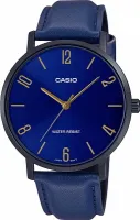 Мужские наручные часы Casio Collection MTP-VT01BL-2B. Точный кварцевый механизм с аналоговой индикацией. Ремешок изготовлен из кожи. Аккумулятор обеспечивает часы достаточным питанием приблизительно на 3 года. Браслет из нержавеющей стали. Прочное, устойчивое к царапинам минеральное стекло защищает часы от повреждений. Часы являются водонепроницаемыми до 3 Бар. Цвет циферблата: Черный. Цвет корпуса: Синий. Высота (с ушками): 48 мм. Толщина: 8 мм. Гарантия: 2 года.
