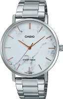 Мужские наручные часы Casio Collection MTP-VT01DM-7A. Точный кварцевый механизм с аналоговой индикацией. Браслет из нержавеющей стали. Аккумулятор обеспечивает часы достаточным питанием приблизительно на 3 года. Браслет из нержавеющей стали. Прочное, устойчивое к царапинам минеральное стекло защищает часы от повреждений. Часы являются водонепроницаемыми до 3 Бар. Цвет циферблата: Серебристый. Цвет корпуса: Белый. Цвет корпуса: Черный. Высота (с ушками): 46 мм. Толщина: 8 мм. Гарантия: 2 года.